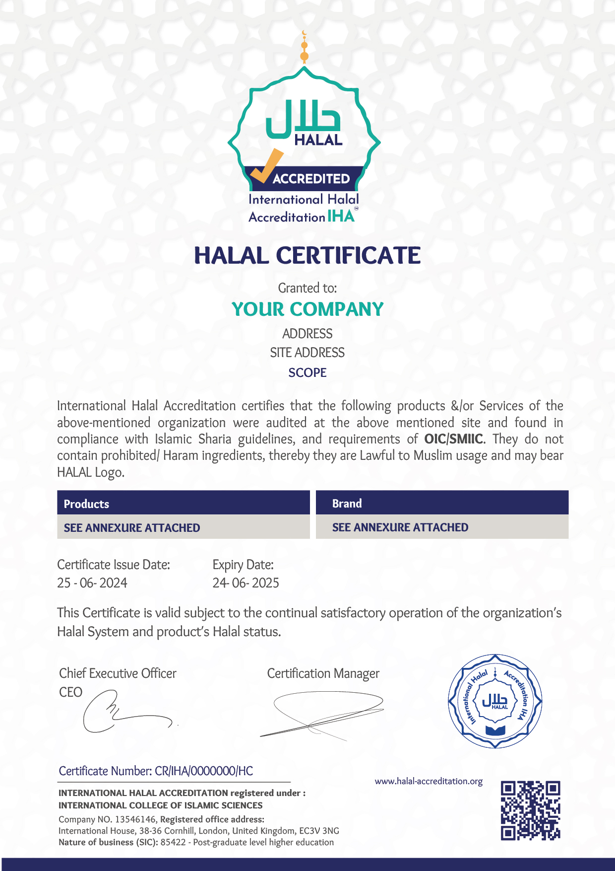 The total cost To issue Halal حلال Certificate for the first year is £385 , Annual renewal of the certificate £275.